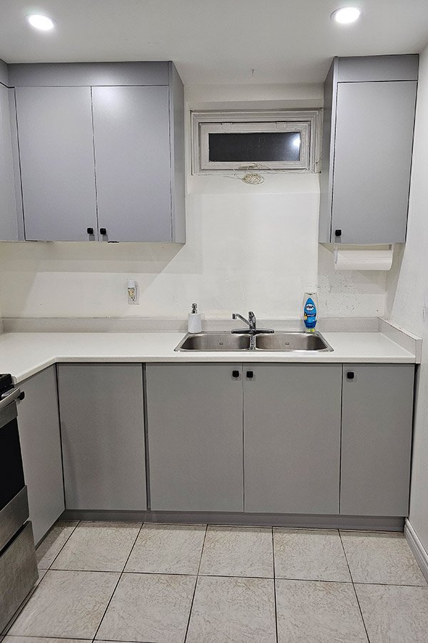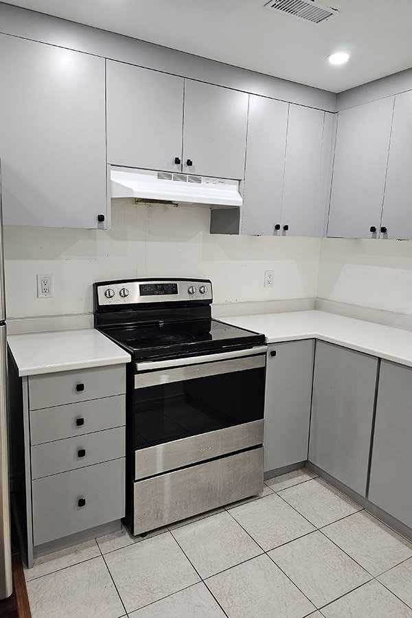 This cabinet refacing project in Brampton offers a budget-friendly transformation with a modern edge. Featuring flat slab-style cabinet doors and a durable laminate countertop, the space is updated with a clean, contemporary look without the need for a full renovation. Ideal for homeowners looking to refresh their kitchen or utility area, this project showcases how refacing can bring new life to existing cabinetry.