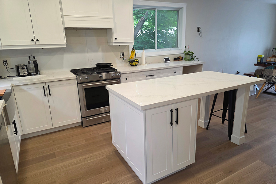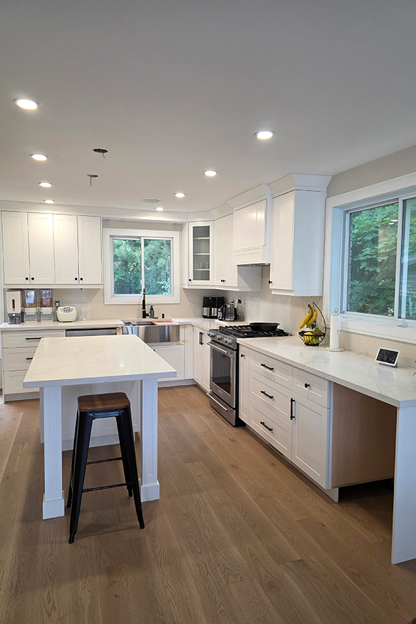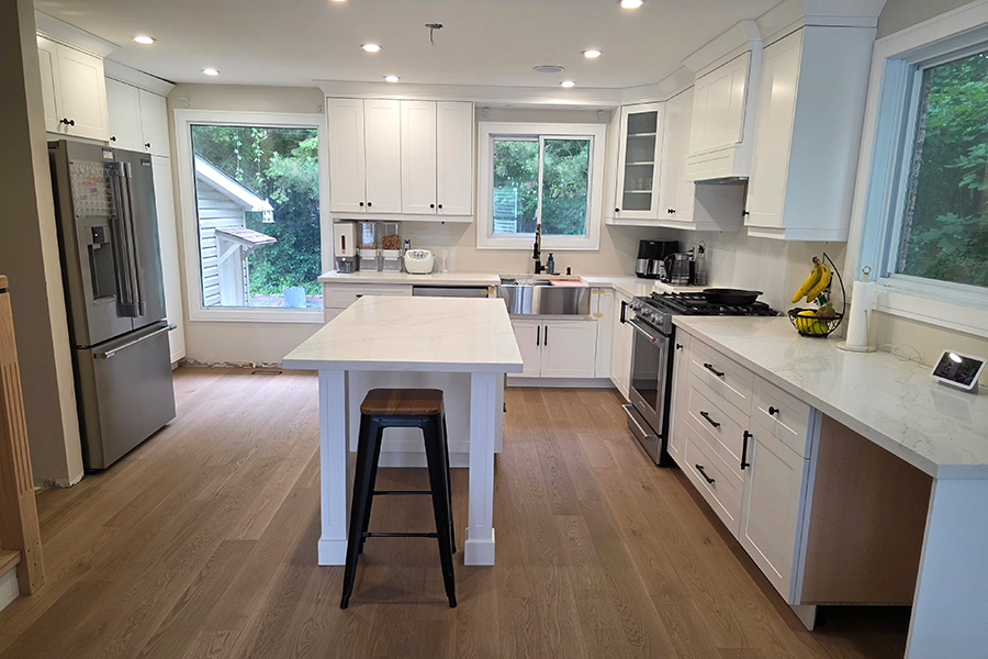 A beautifully crafted custom kitchen in Mississauga featuring painted HDF shaker-style doors, a Simply White finish, and a fully customized hood design. This project combines elegance, durability, and modern functionality-perfectly showcasing the craftsmanship of Galaxy Custom Kitchens.