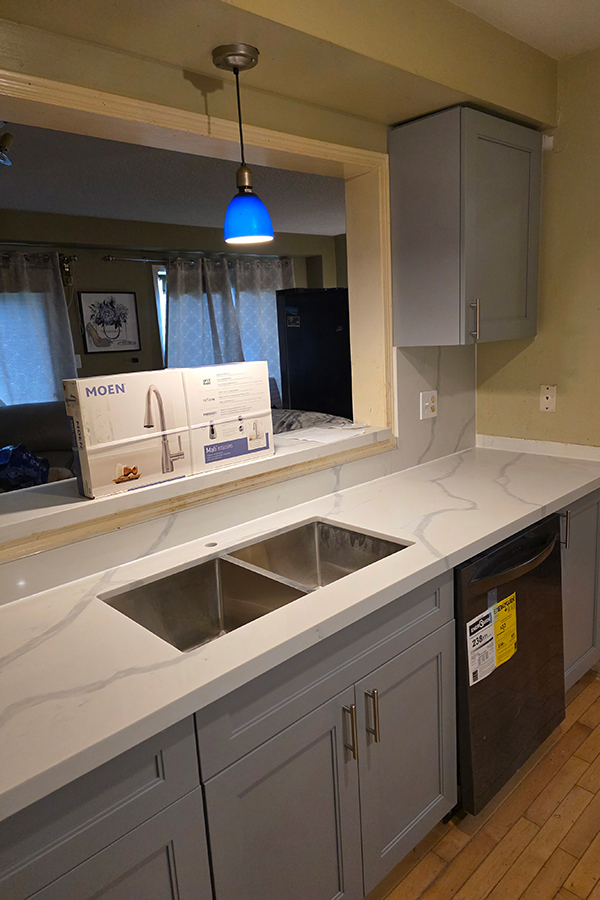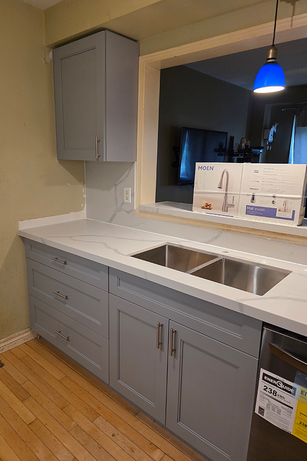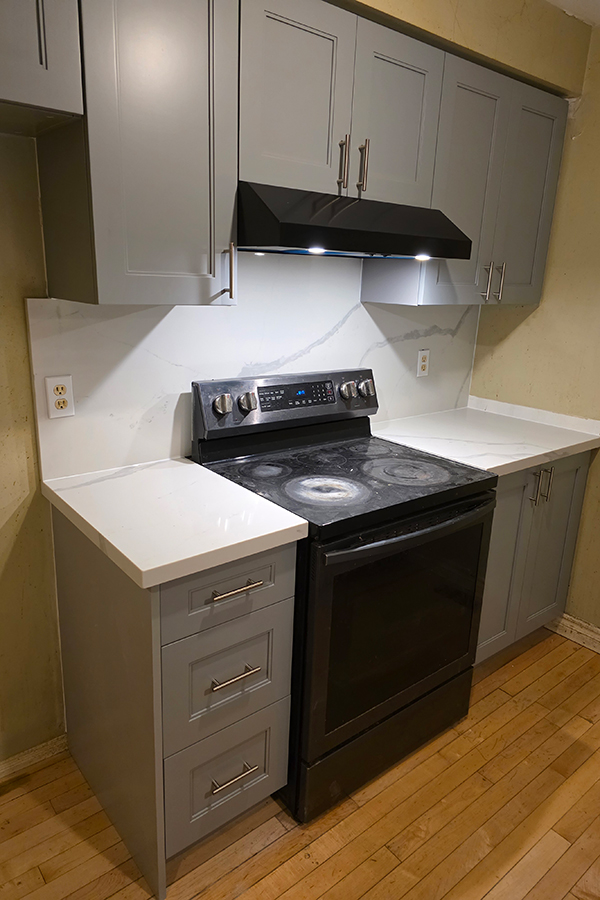 This Mississauga kitchen project features Standard Kitchen Cabinets crafted for durability, functionality, and a clean modern look. With Painted HDF Doors, elegant Step Shaker-style profiles, and a seamless Quartz Countertop & Backsplash, the space delivers a perfect blend of timeless charm and contemporary finish.